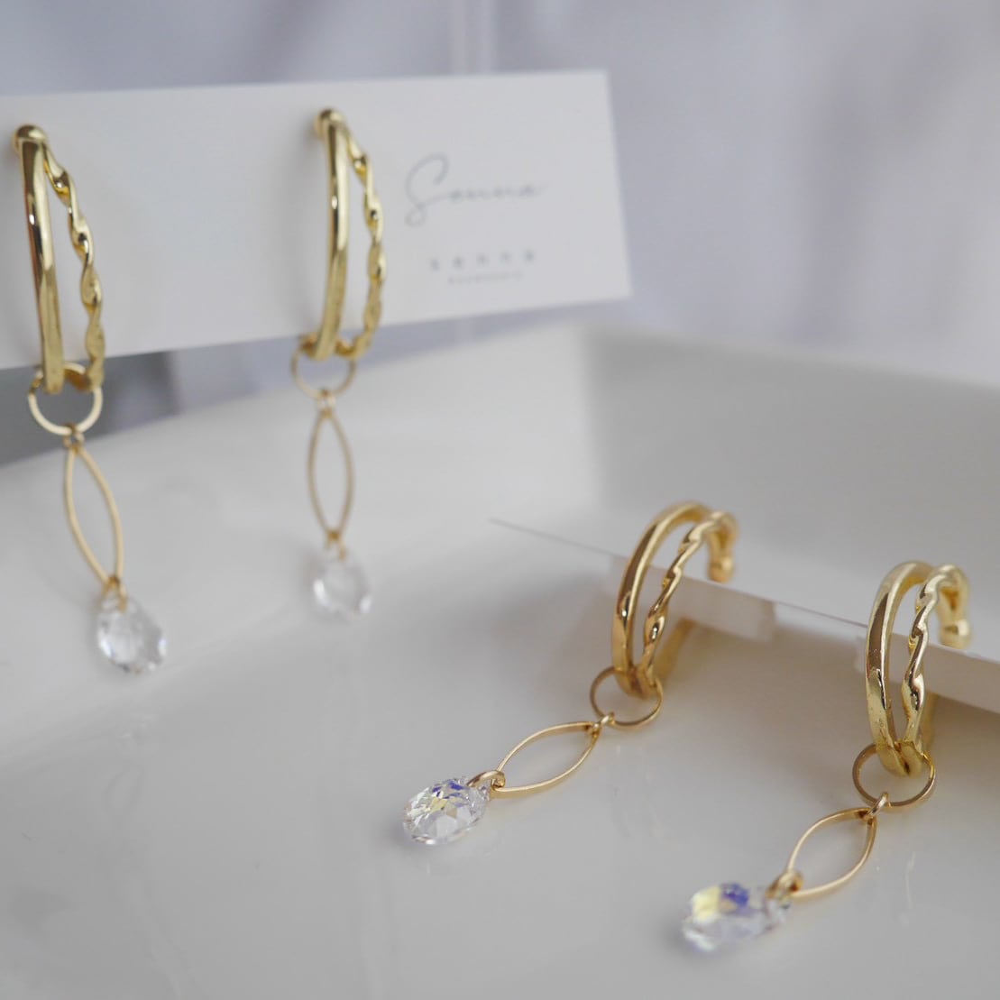 スワロフスキーが輝く両耳タイプのイヤーカフ