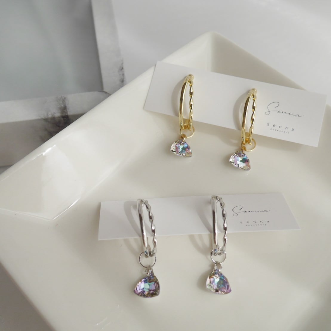 動きで主張するのではなく、光そのものを引き込んで輝くため、耳元に上品な存在感をかたちにしたデザイン。スタイリッシュなスタイルがお好きな方や、アップヘアスタイルが多い方にもおすすめです◎